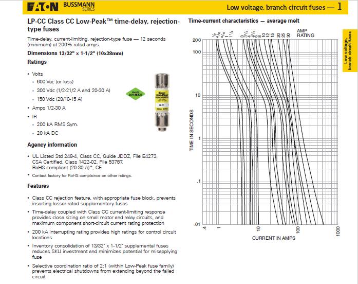 伊頓Bussmann熔斷器LP-CC Class CC Low-Peak? time-delay, rejectiontype fuses